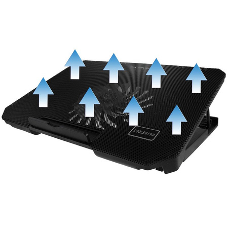 AABCOOLING NC74 - schwarz - der Kühler mit dem leistungsfähigen, lautlosen Lüfter. Die Abmessungen garantieren die große Kompatibilität mit Laptops und Notebooks. Der Drehregler ist für eine individuelle Anpassung von Drehzahl und damit der Lautstärke zuständig. Zusätzliche Vorteile sind die vierfache Einstellung des Neigungsvinkles und die Stützen für den Laptop. Die Lautstärke beträgt 11dB(A). Die Kühlung übernimmt ein sehr 125-mm-Lüfter, der kalte Luft ansaugt und über die Löcher an der Oberseite genau gegen die Unterseite des aufgesetzten Notebooks bläst. Das führt zur Reduzierung der Temperatur des Laptops und stellt eine gute Kühlung des Prozessorkerns sicher. Die hydraulische FDB Gleitlager sind sehr lautlos. USB Anschluss - Super Speed USB 3.0 Port, Hi-Speed USB 2.0, 1.1/1.0 Port und Kompatibiliät mit folgenden Systemen: Windows, MacOS, Linux.