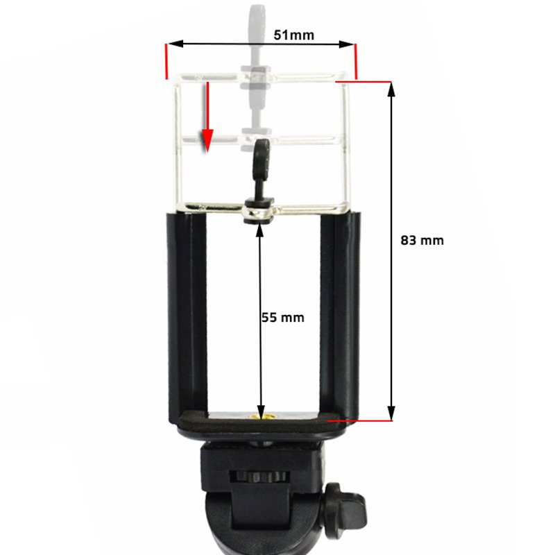 Der Stock ist mit einem stabilen Griff ausgestattet, um ein Smartphone mit einer Breite von 83 mm zu befestigen. Verwendete Materialien verhindern Kratzer am Telefon und in die Halterung integrierte Druckfedern sorgen für eine stabile und sichere Montage. (Telefon nicht im Lieferumfang enthalten)
